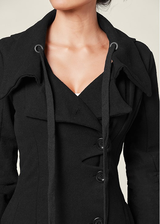 Our street chic handkerchief hem coat will let you rule any sidewalk. With an asymmetrical hem, this trench coat is too chic to pass by.