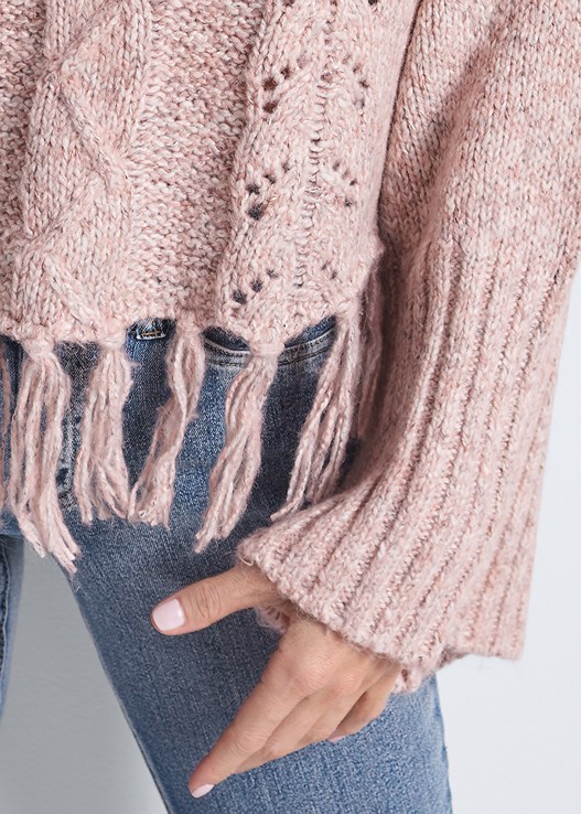 Take your sweater game to a whole new level this season! This chunky turtleneck keeps you nice and toasty while the fringe details and slight bell sleeves ensure your winter brunch outfit stays fabulously on-trend. Once you put on this cozy little number, you’ll never want to take it off!