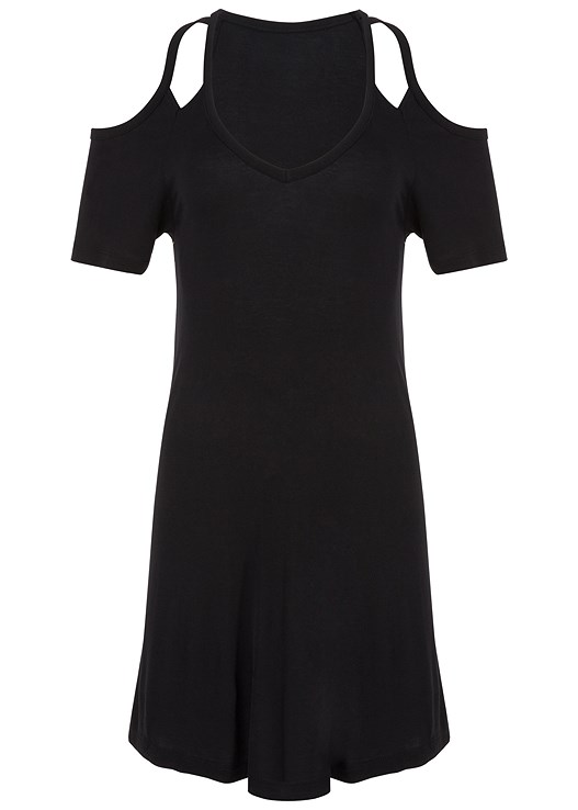 Keep it simple! Get back to basics in this fresh take on your favorite casual dress. Cut out straps complement cold shoulders for a unique take on a summer classic.