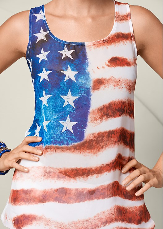 Bring out the all-American girl in you for a forever kind of style. An American flag blouse that shouts celebration whether it’s the Fourth of July or not.
