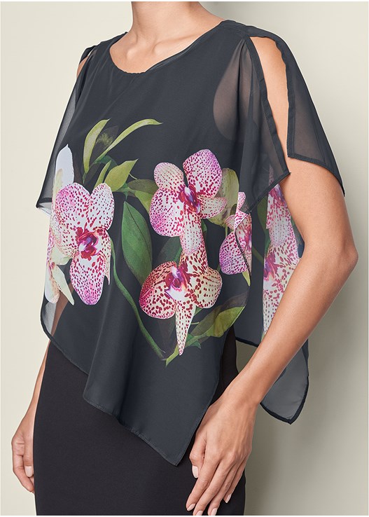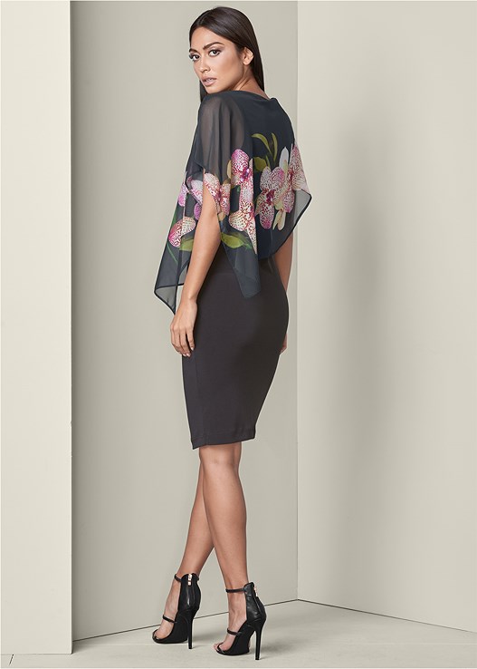 This island-inspired chiffon detail dress is the perfect choice for summer parties! The fit is snug without being clingy and the overlay elevates this dress to a bit of elegance. Hits just above the knee making it appropriately sexy no matter what the event.