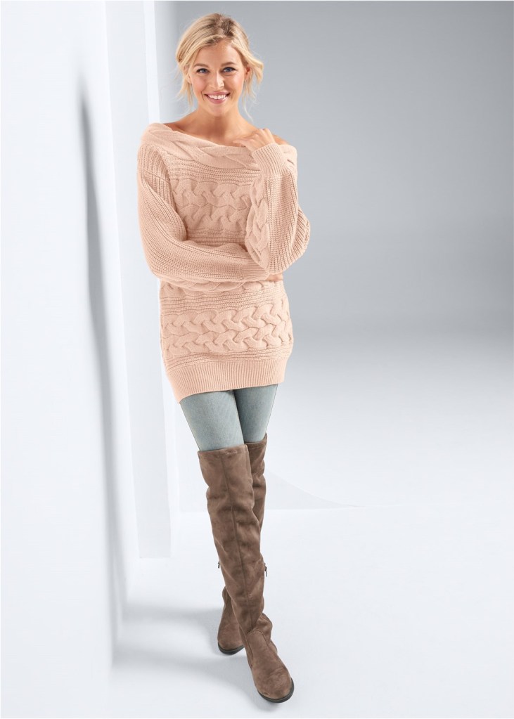 Love or hate the cold, we can all agree that a chunky knit sweater makes the chilly season so much sweeter. This Boat Neck Cable Knit Sweater fits loose and just below the hips, complete with a wide neckline that can be worn off one shoulder for an effortlessly sensual vibe.
