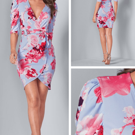 LIGHT BLUE FLORAL FAUX WRAP DRESS