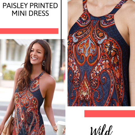 NAVY MULTI PAISLEY PRINTED MINI DRESS
