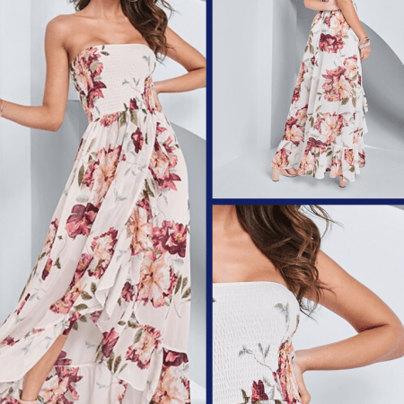 WHITE MULTI STRAPLESS SMOCKED DRESS