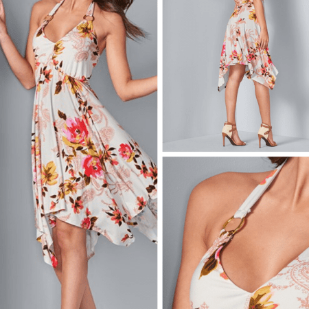 WHITE MULTI FLORAL SHARKBITE DRESS